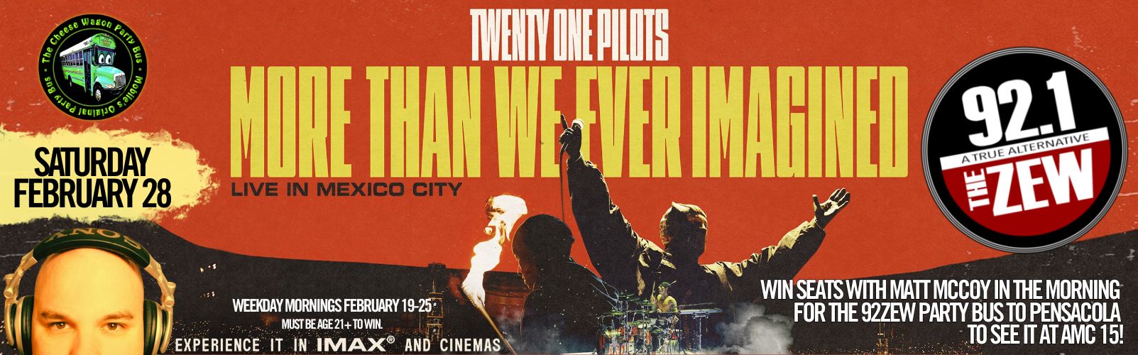Listen to Matt McCoy each weekday February 19-25 for chances to win seats on the 92ZEW Cheese Wagon Party Bus to Pensacola to see the film at AMC15! Or, buy your seats and we’ll party […]