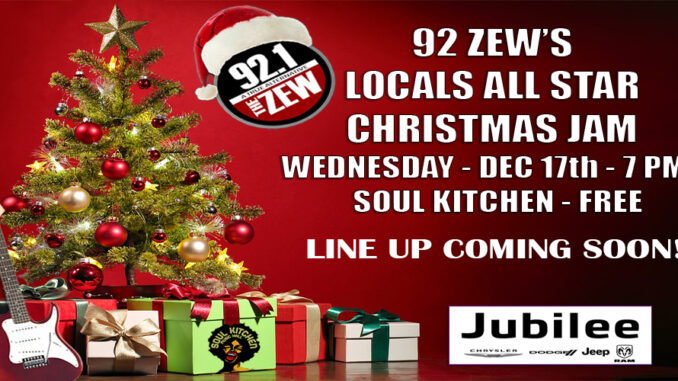 All we ask as a “ticket” is for you to bring a new unwrapped toy to donate to the Child Advocacy Center. Doesn’t matter the shape or size, boy or girl, just something they can wrap and put under the tree for the kids they help all year. That’s it. Special thanks to Jubilee Chrysler, Dodge, Jeep, Ram for helping us put this amazing night on. It’s a night that’s all about the spirit of the season and spotlighting our local musicians too, but we can’t do that without you, so put it in your Google calendar, tell Siri to remind you, put a post it note on the fridge whatever it takes because we want to see you there, Wednesday December 17th, 7pm, at The Soul Kitchen.