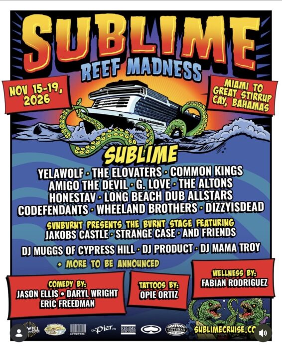 The seafaring event will set sail Nov. 15 from Miami and will stop at Great Stirrup Cay, Bahamas, before returning on Nov. 19. It will feature two headlining performances from Sublime, including a performance of their 1996 self-titled album in full.