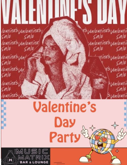 VALENTINE’S DAY PARTY– Sat 7pm-11pm. The all new Music Matrix. Bring a date or all your Galentines friends and dress to impress. DJ Heavy T will be spinning the best tracks and there will be contests including best dressed, Hottest outfit, Cheesiest, and classiest outfit for for your own bottle of champagne or wine of choice!