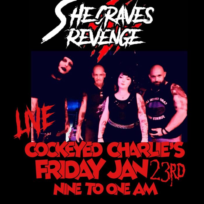 SHE CRAVES REVENGE LIVE- Fri Cockeyed Charlie’s Sports Bar. 9pm-1am. Hard rock cover band bringing the party to Cockeyed Charlie’s Friday Night.