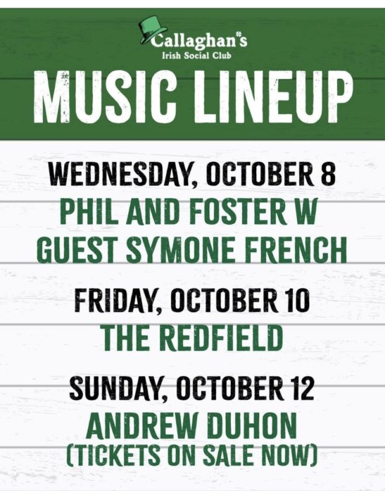 CALLAHAN’ S IRISH SOCIAL CLUB- Wed Phil & Foster with SYmone French 7pm